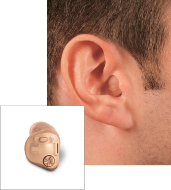 This hearing aid is placed in the ear canal and is the smallest available. It takes advantage of the ear’s natural ability to collect sound, and its discreet size makes the device virtually invisible to others.
